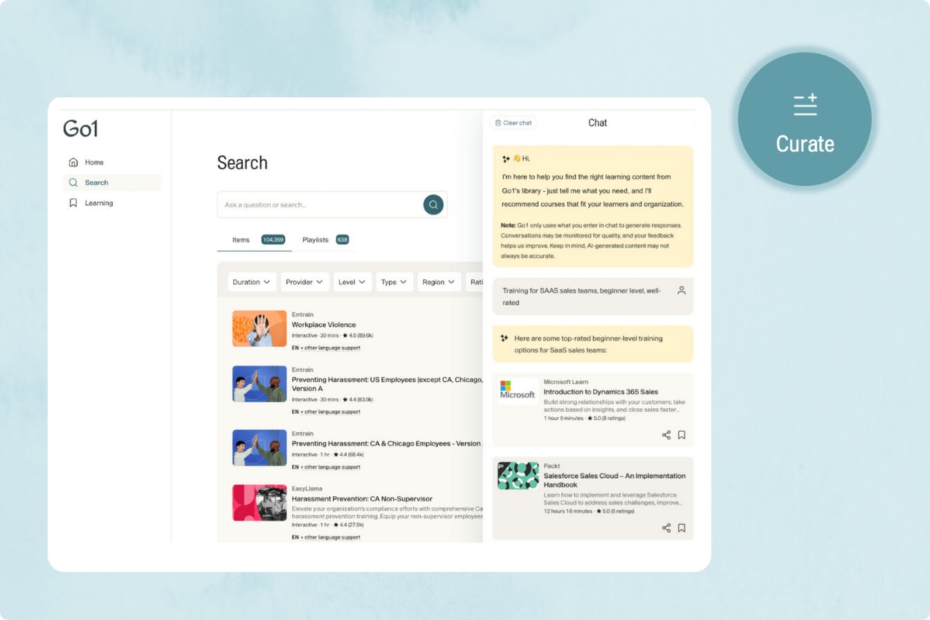 - Make it meaningful - Blend your internal expertise with Go1’s Library to create learning that reflects your culture and drives engagement