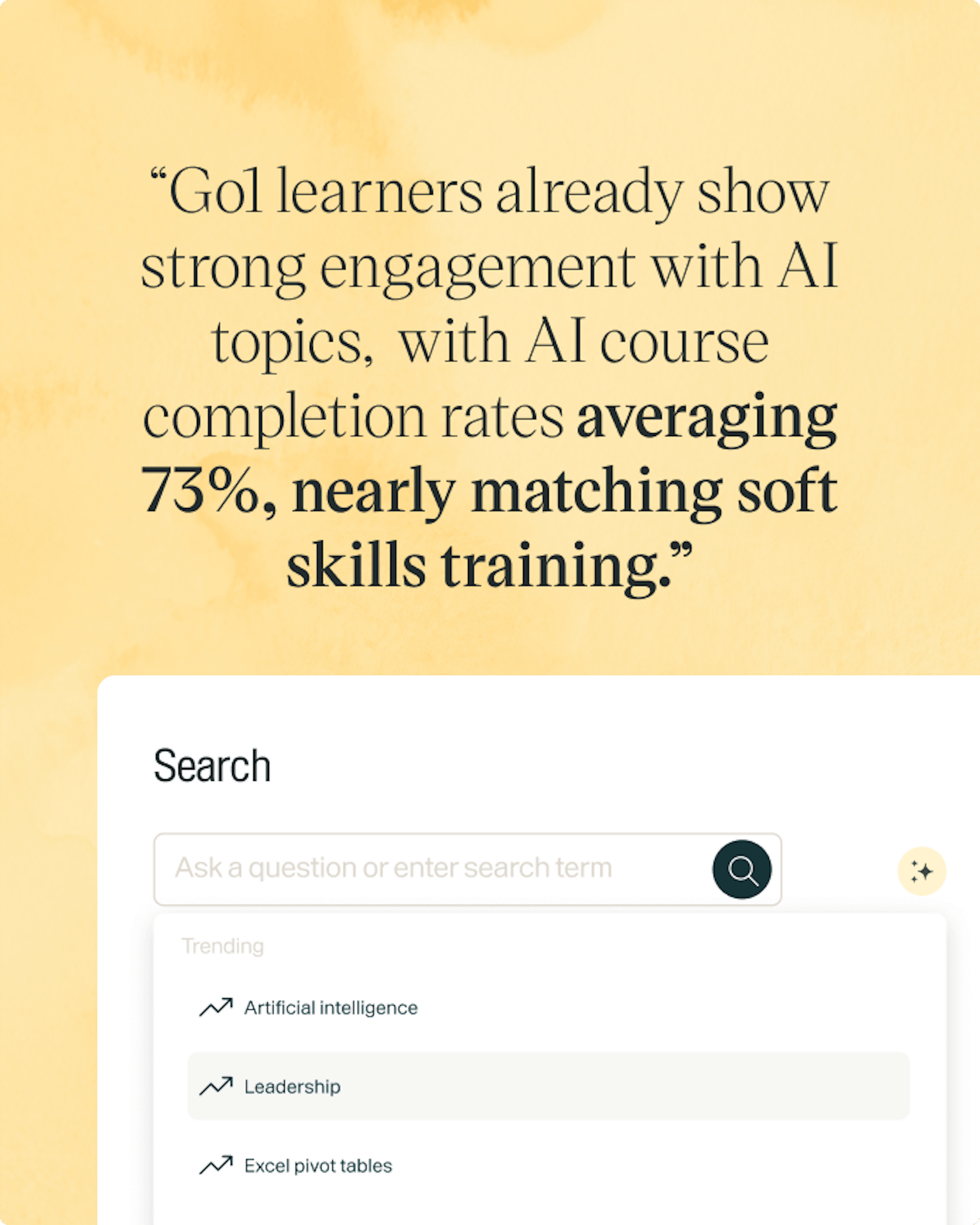 With a clear playbook, curated playlists, and role-based learning paths, Go1 helps you turn your AI L&D strategy into action and impact.