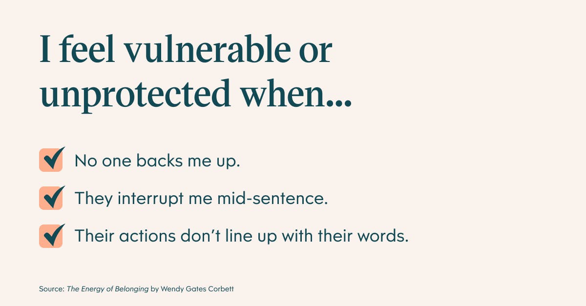 This experience led Wendy to ask the question: What is it that creates a culture of belonging in the workplace? She compiled a survey about belonging at work and has received nearly 3,000 responses, and counting. Wendy has used these responses to build the following framework, designed to help teams and leaders grow and strengthen a sense of belonging in their business.