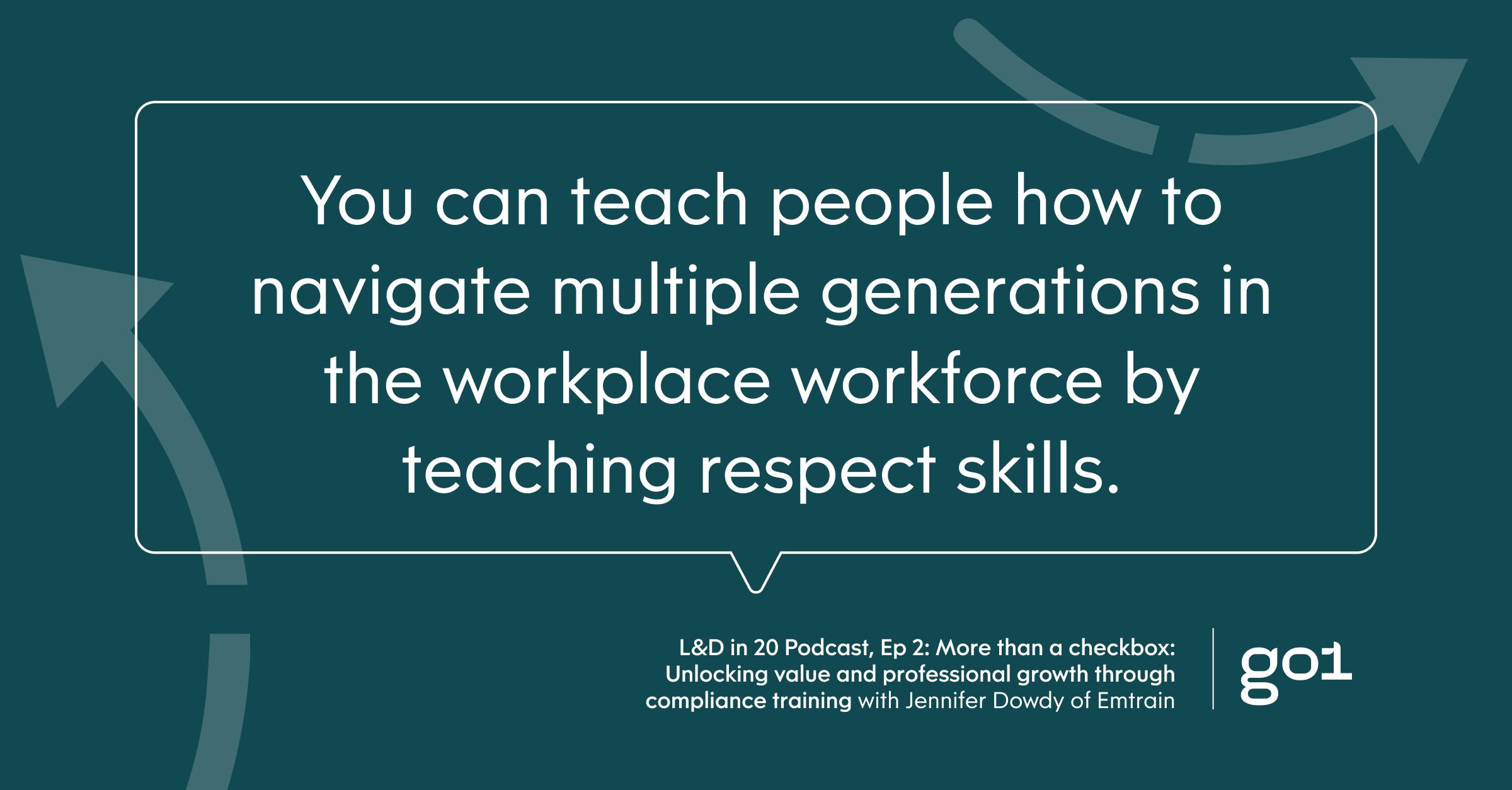 For more on the topic of cohesion among a multigenerational workforce, be sure to check out L&D in 20 Episode 2 with Jennifer Dowdy of Emtrain