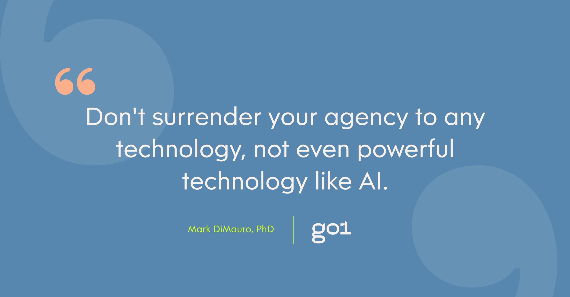 But what about ethical integrity, laws, and standards in AI? Mark dedicated a major part of the webinar to how you can build out a robust ethical framework for deploying AI at work. DiMauro emphasized that while AI has transformative potential, it must be governed by strict ethical standards to prevent misuse, mitigate risk, and avoid major backlash. Legal implications, data privacy, and the necessity of maintaining human control over AI technologies are critical considerations.