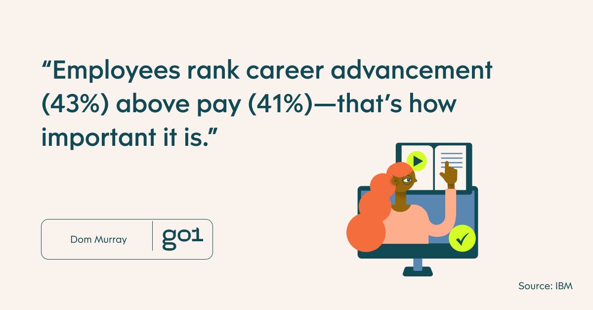 A recent survey by IBM confirms the importance of career planning, finding that employees ranked career advancement opportunities (43%) — like career planning — higher than compensation and benefits (41%). That’s right, employees ranked career advancement above pay — that’s how important it is.