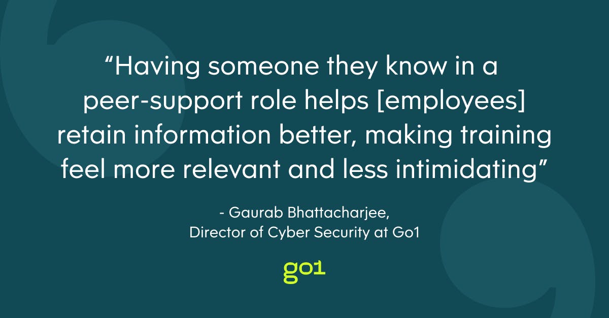While tailoring training to individual roles is crucial, Gaurab Bhattacharjee, who leads cybersecurity at Go1, also stressed the importance of fostering a broader cybersecurity culture within the organization. He emphasized the importance of maintaining consistent and engaging training across all departments, not just IT. He introduced the concept of "cyber buddies" as a strategy to foster continuous communication and personalize the training experience.