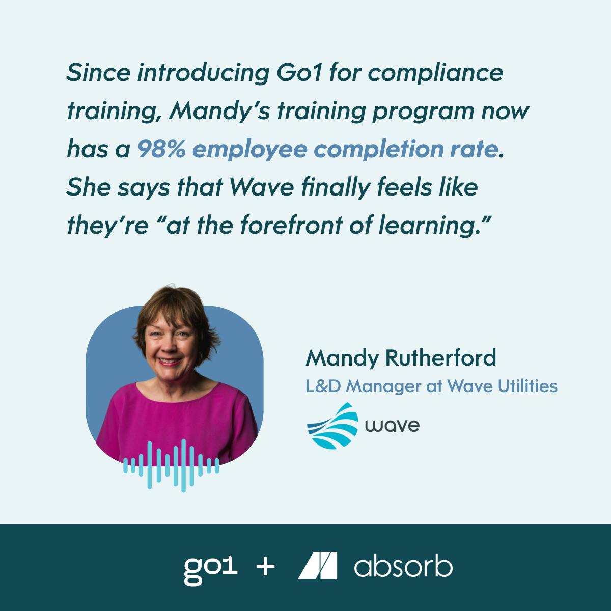 Though plenty of organizations struggle with compliance training, deploying the right tools and strategies can lead to success. Mandy Rutherford, Wave Utilities’ L&D Manager, knows that to be true. Since using Go1 for compliance, her training now has a 98% completion rate. She says that Wave finally feels like they’re “At the forefront of learning.”