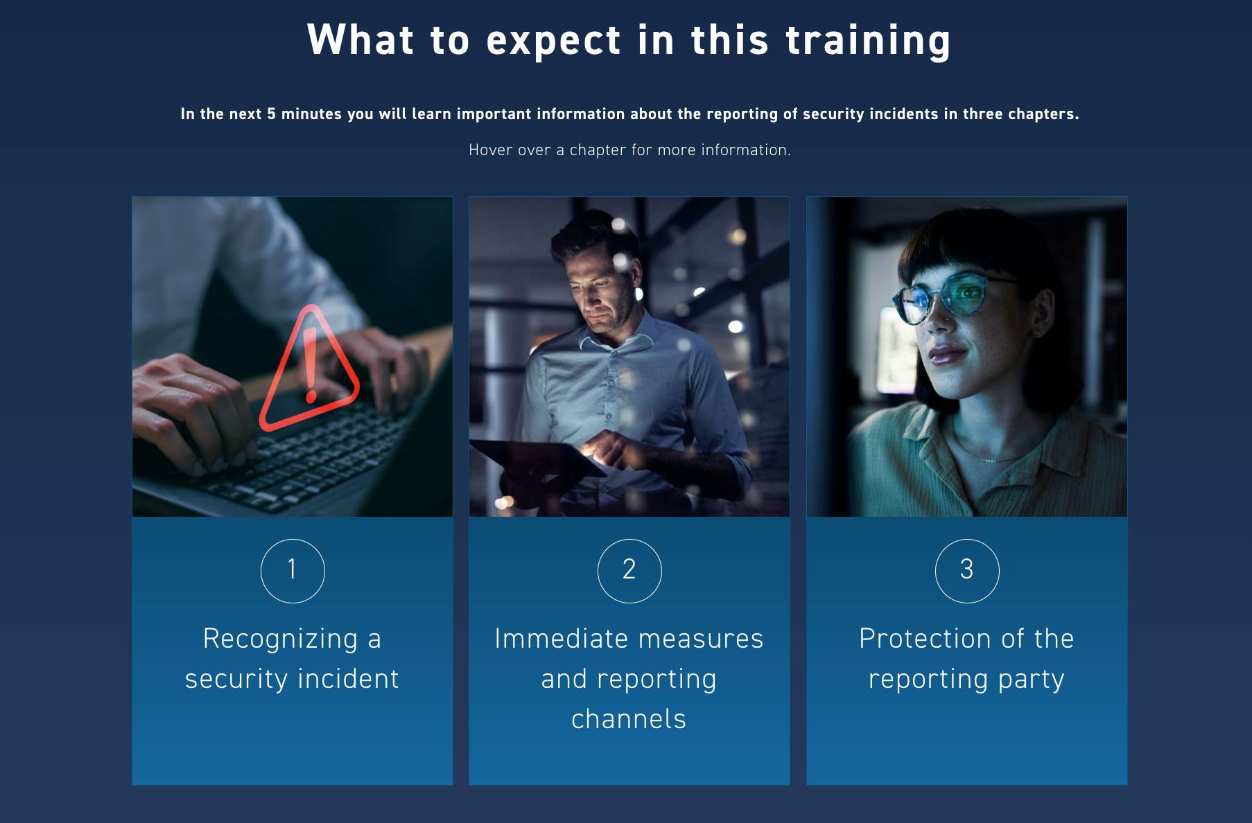 Discover our comprehensive online training for detecting and reporting cyber security incidents. Learn to quickly identify potential threats, develop effective reporting strategies, and enhance your cyber resilience. Get prepared to protect your business from digital risks. Tailored for employees worldwide, suitable for all levels, and optimized for a mobile experience.