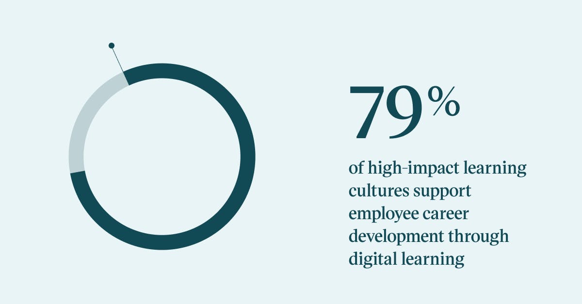 For example, MindTools’ 2022 L&D Benchmark Report found that 79% of high-impact learning cultures (HILCs) support employee career development through digital learning. In contrast, just 9% of low-performing teams do the same, meaning there’s a correlation between learner-centred approaches and high-performing teams.