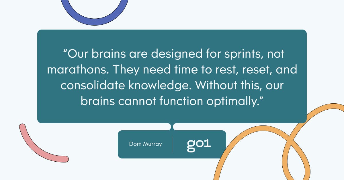 The case for taking breaks is clear-cut. Put simply, our brains are designed for sprints, not marathons. They need time to rest, reset, and consolidate knowledge. Without this, our brains cannot function optimally. It is often during these moments when we are not actively thinking about anything that our best ideas suddenly come to us — those brilliant ‘lightbulb’ moments.