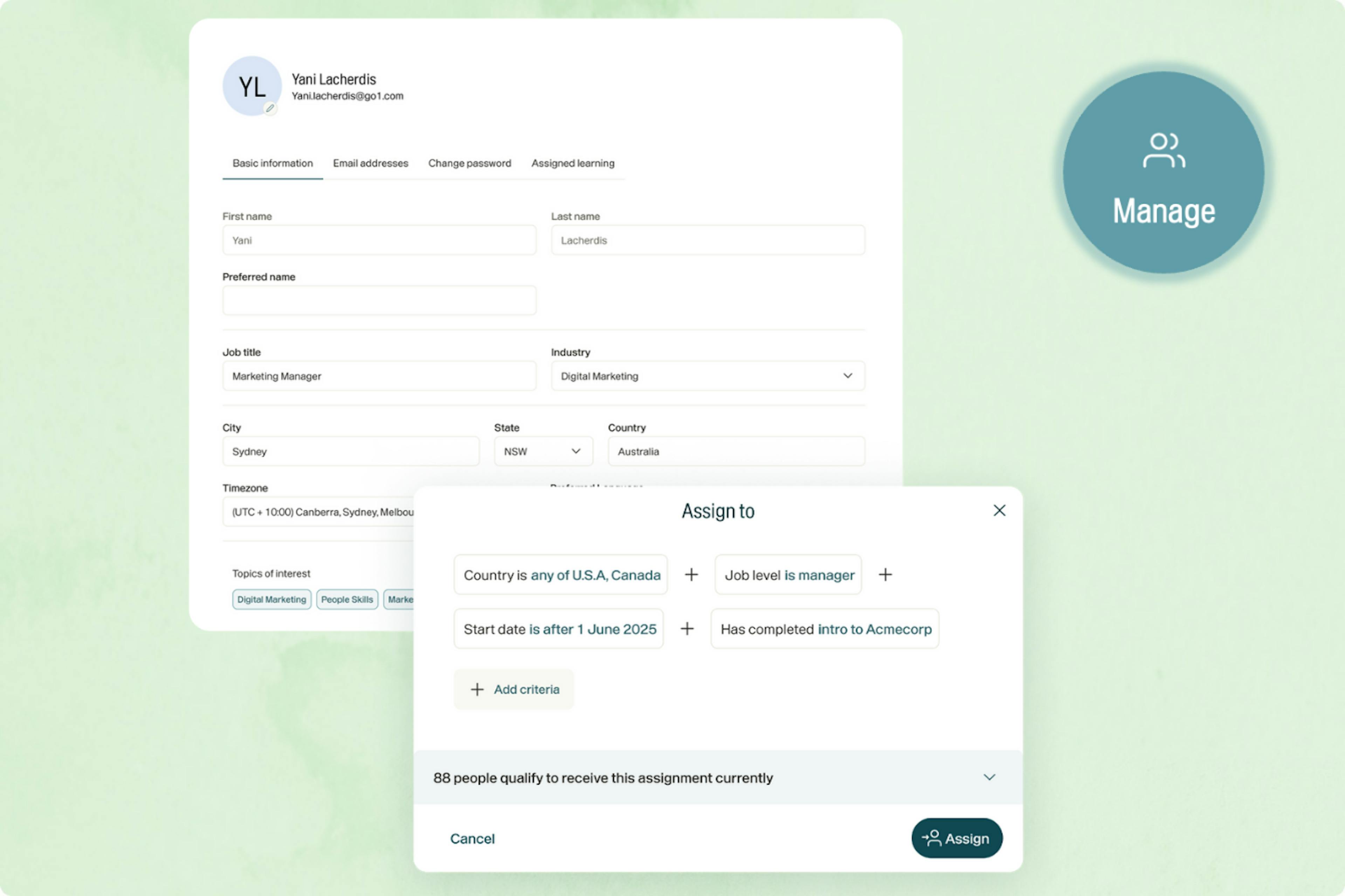 Enable managers and admins to manage people and learning faster, with less manual work.