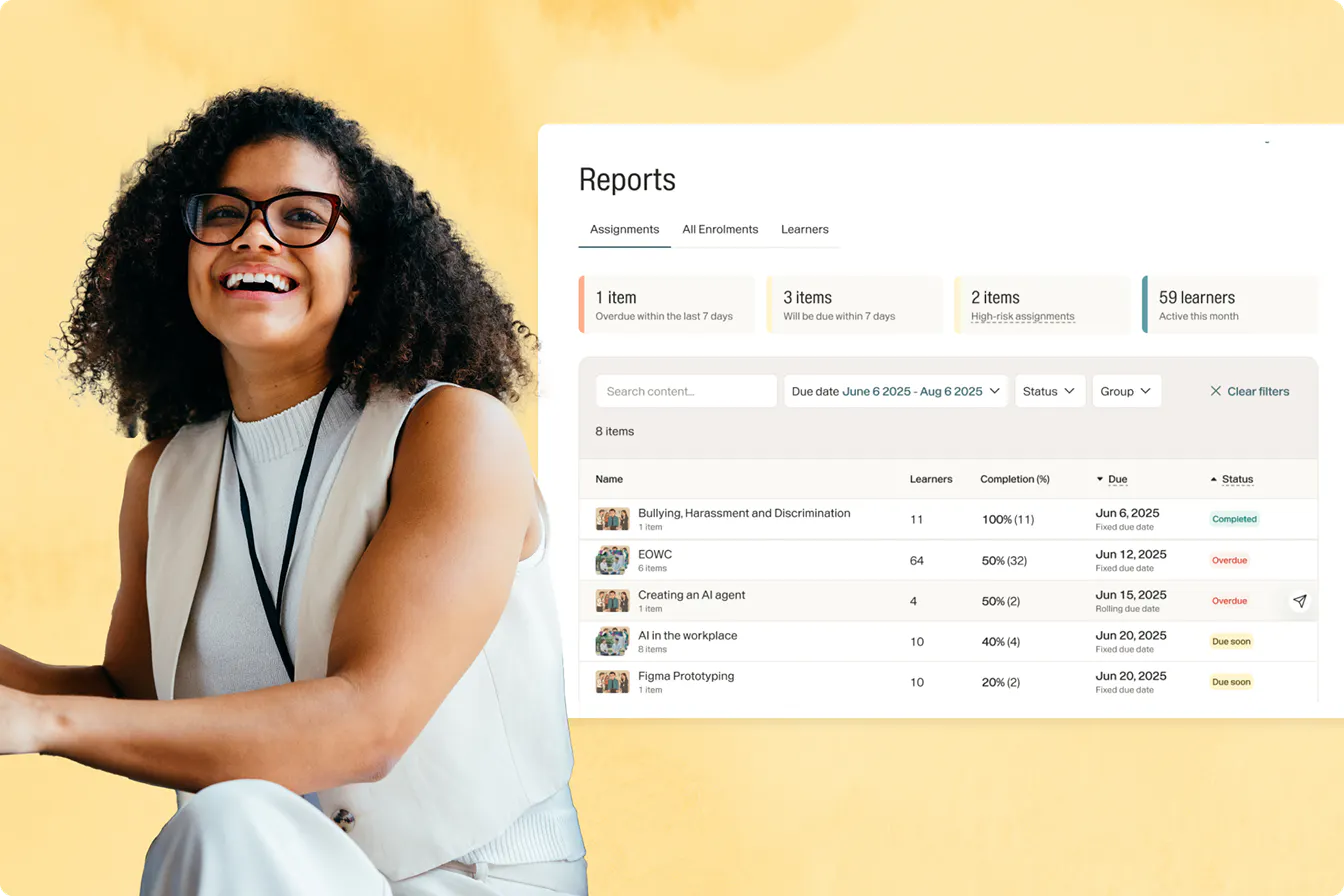 AI-powered playlists keep your programs fresh and relevant without the manual effort. Go1 saves you hours of admin work so you can focus on doing the work you enjoy.