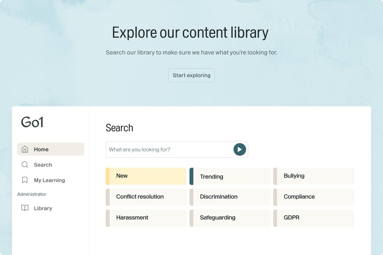 At Go1, we make the scary stuff disappear. Our all-in-one learning content solution gives you instant access to thousands of courses across compliance, leadership, and essential skills. Everything is curated, cost-effective, and integrated into your existing tech. No more chasing content. No more admin monsters.