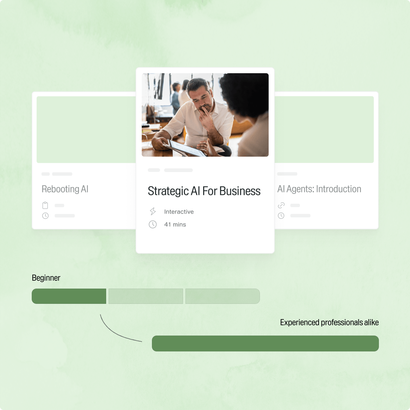 Give teams the training they need to use AI confidently and responsibly so they can apply it to real work right away.